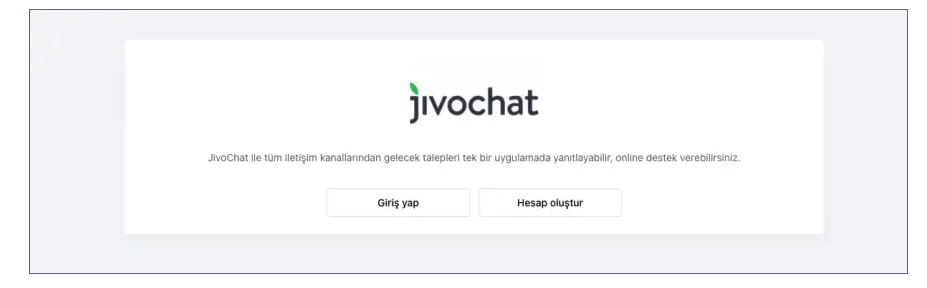 Uygulamayı kurduktan sonra Uygulamalarım kısmından JivoChat’e basın. Açılan ekranda eğer hesabınız varsa Giriş Yap’a, yoksa Hesap Oluştur butonuna basın.